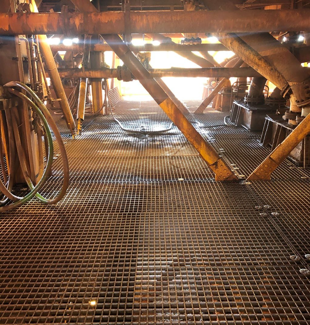 The Christmas Creek mine site accessways were non-confirming to required site and regulatory safety standards. Grid mesh and handrails were required to be replaced to allow access.